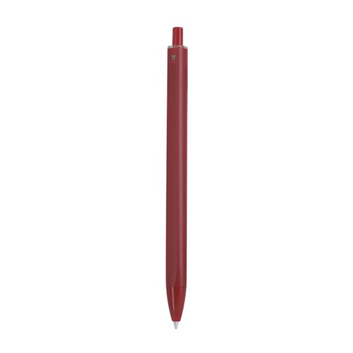 Bolígrafo de mecanismo pulsador fabricado en ABS. Pulsador en mismo color que cuerpo con acabado mate. Con original diseño en cuerpo frontal plano y contorno redondeado.En tinta azul.