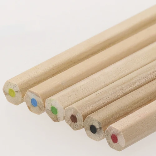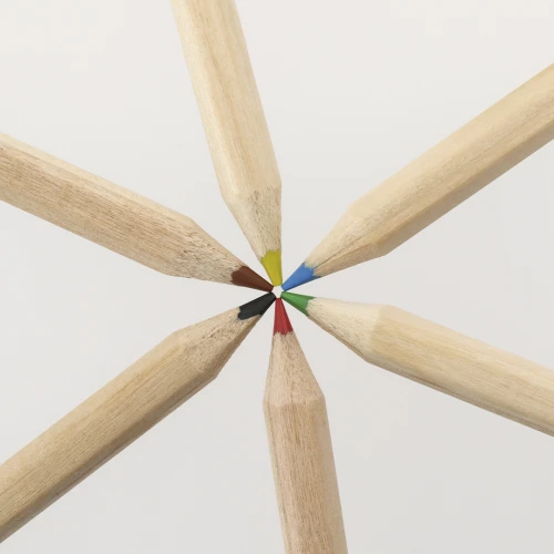 Set de 6 lápices de madera, con cuerpo hexagonal y minas en varios colores. Presentados en estuche blanco de cartón con cierre de solapa. Especial para impresión digital.