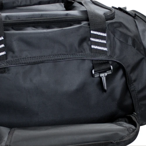 DELUXE Bolso Deportivo y de Viaje grande, modelo "TRAVEL & SPORT". Tela Polyester 840D Jacquard, impermeable. Capacidad 50 litros, tamaño 57 x 32 x 28 cm. Incluye compartimento lateral independiente para Zapatos. Compartimento principal y Bolsillo lateral con vivo y costuras reforzadas. Base protectora de Cartón Forrado. Bolsillo delantero independiente para bordar logo. Un bolso de lujo para sus viajes o paseos.