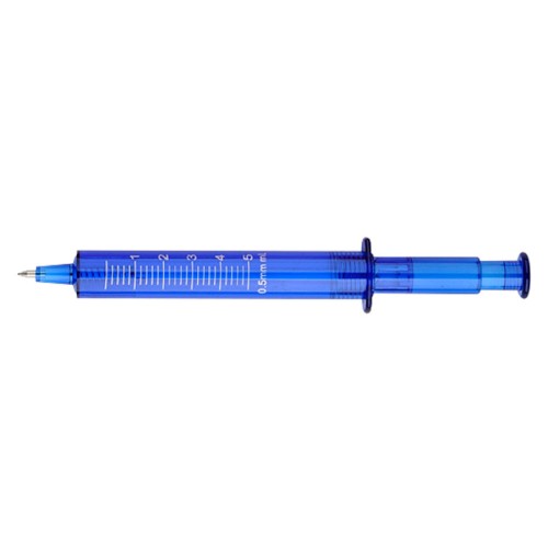 Bolígrafo plástico promocional "Jeringa". Escritura Azul.