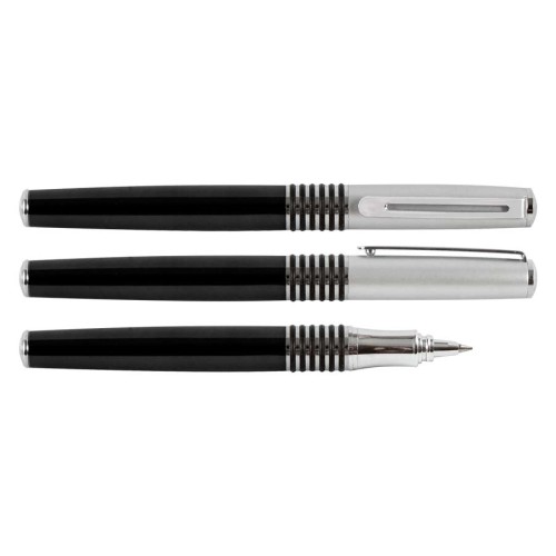 Roller Ball Metálico modelo "Manager", cuerpo de color metalizado y tapa plateada satin. Tinta negra.