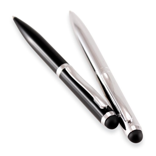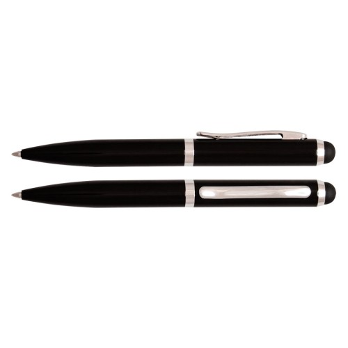 Bolígrafo Metálico modelo "Hotel", con goma posterior negra "Touch-Screen" para pantalla táctil. Escritura negra.