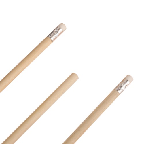 Lápiz grafito con goma. Realizado en madera con detalle de aluminio en reborde de goma. Material de la goma: Caucho. Punta sin preafilar. Medidas: 189 mm x Diámetro 0,8 mm. Mina: 2mm.