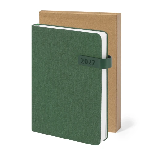 Agenda A5 fabricada en poliéster reciclado RPET. Con cubiertas rígidas, con efecto bitono, cierre magnético de PU y marcapáginas a tono. Diseño página día. Incluye zona de anotaciones. En 2 idiomas: castellano e inglés. Presentada en cada individual. El material RPET se elabora a partir de plástico reciclado, para así fomentar la reutilización de residuos plásticos y ayudar a la sostenibilidad del planeta.