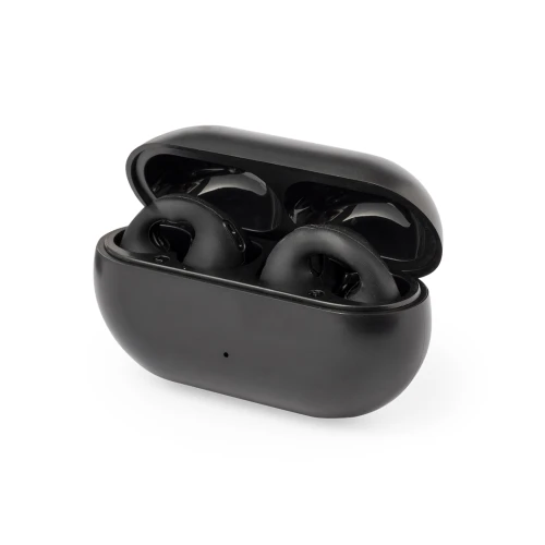 Auriculares open ear con conexión Bluetooth 5.3 y función manos libres. Diseñados para ajustarse perfectamente a las orejas con su práctico clip, ofreciendo una experiencia auditiva sin molestias. Botón de control táctil integrado en el auricular, con base de carga a juego y batería de 200 mAh, con conexión Tipo C y cable de carga incluido. Presentados en caja individual de diseño kraft, con manual de instrucciones en español e inglés.Fabricados conforme a los estándares RoHS y en cumplimiento con los siguientes requisitos de seguridad:Sistema de protección contra sobrecalentamiento.Sistema de protección contra sobrecarga.Sistema de bloqueo para evitar cortocircuitos.
