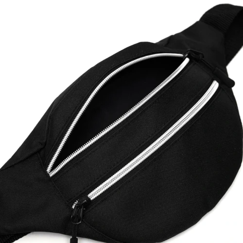 Banano de 600D polyester, duradero y resistente, con dos bolsillos con cierre para mayor seguridad. Cuenta con una correa negra ajustable con broche para un ajuste cómodo. Ideal para llevar tus objetos esenciales en actividades al aire libre, viajes, caminatas o simplemente para un look urbano y práctico.