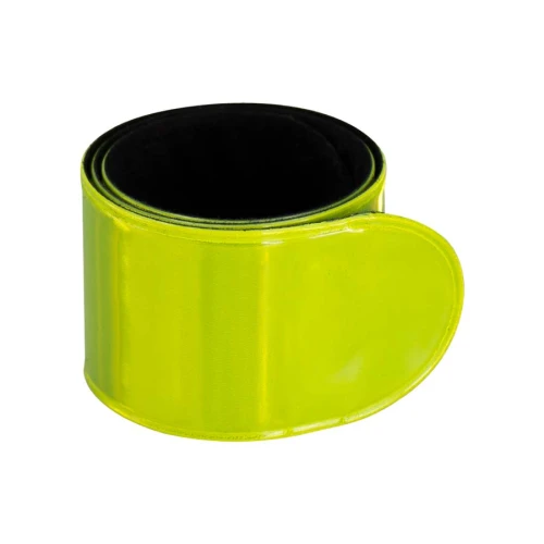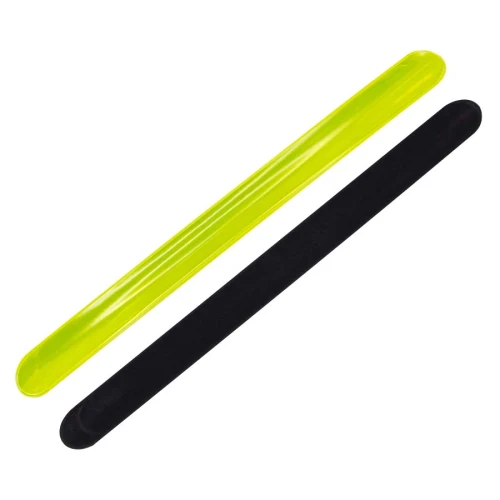 Banda Reflectante Retráctil, para uso nocturno. Reverso negro aterciopelado. Ideal para usar en muñeca, brazo y tobillo. Presentación en bolsita transparente de polipropileno con orificio para ganchera.