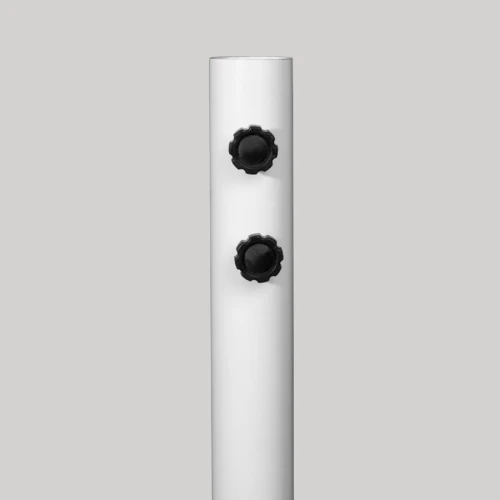 Base de Acero pintado blanco. Contiene orificios y 4 pernos para anclaje. Para quitasol P14 o quitasoles con asta de Ø60mm.