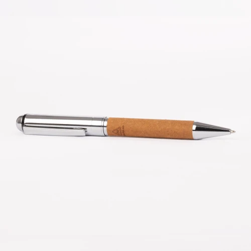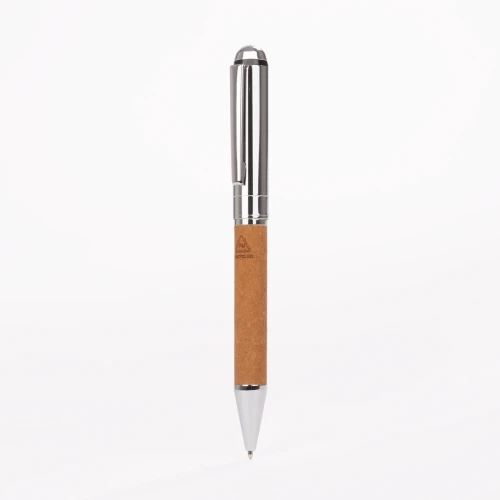 MENDOZA es el equilibrio perfecto entre elegancia atemporal y compromiso sostenible. Su cuerpo metálico con detalles cromados se envuelve en cuero reciclado (PU), aportando una textura sofisticada y una segunda vida a materiales que merecen ser reutilizados. De acción giratoria y acabado en tono marrón, este bolígrafo puede llevar tu logotipo grabado con precisión láser, incluyendo el distintivo R-PU, símbolo de su origen reciclado. MENDOZA es ideal para marcas que valoran la durabilidad, el diseño y el mensaje que transmiten al escribir.