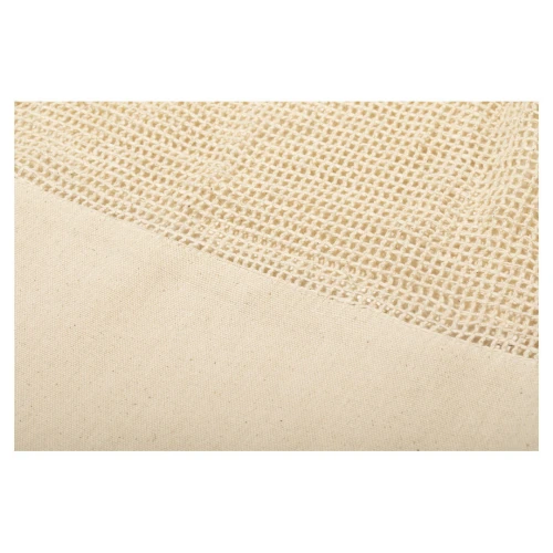 Bolsa de redecilla de línea nature en algodón crudo de 220g/m2, con superficie lisa para impresión. Asas largas de 60 cm reforzadas.