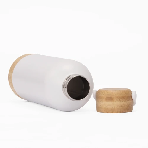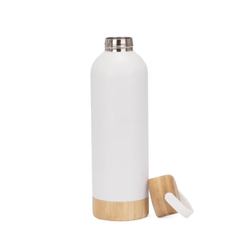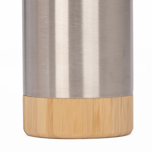 SIBERIA es una botella térmica de acero inoxidable reciclado, diseñada para acompañarte en cualquier clima con estilo y responsabilidad. Su capacidad de 550 ml y su aislamiento de doble pared mantienen la temperatura de tus bebidas por más tiempo. El cuerpo plateado se complementa con una elegante manga de bambú, aportando un detalle cálido y natural que contrasta con su acabado metálico. Su tapa de acero enroscable refuerza la seguridad y la estética. SIBERIA es ideal para marcas que buscan destacar con un mensaje de compromiso y diseño atemporal.