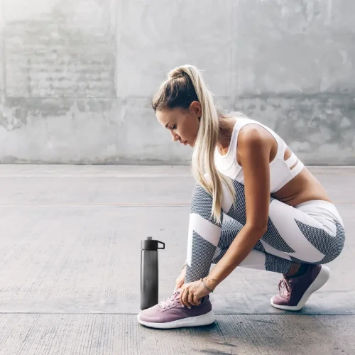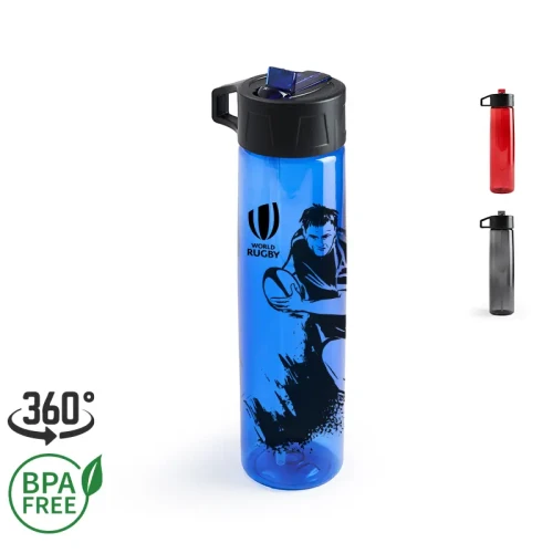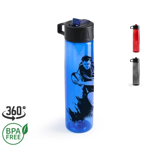 Botella de PP y PC, con boquilla vertedora ideal para ir al deporte. Cuenta con un agarre en la tapa, para facilitar su transporte. Capacidad: 750 mL. Medidas : 27 x 6,6 cm. Es apta para lavavajillas. Es apta para microondas.