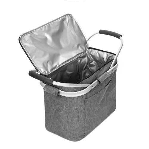 Cooler de Polycanvas con Interior en PEVA y Foam de 3 mm. Posee estructura plegable de aluminio. Cuenta con agarres en rubber y Bolsillo frontal organizador. Medidas: 32 x 36 x 20 cm. Capacidad: 23 Litros.