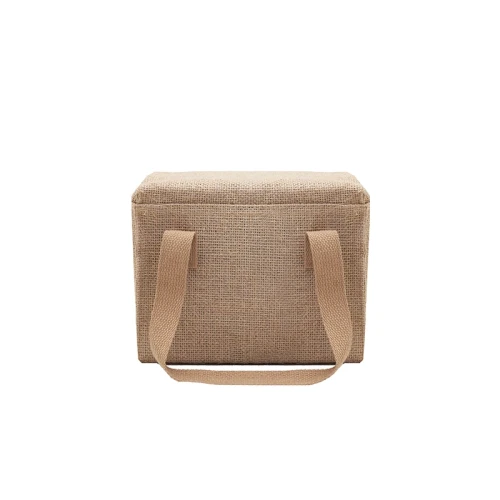Cooler con exterior de Yute e interior térmico confeccionado en PEVA. Debido a la naturaleza rústica del material, el producto puede presentar imperfecciones. ReUseMe.