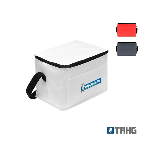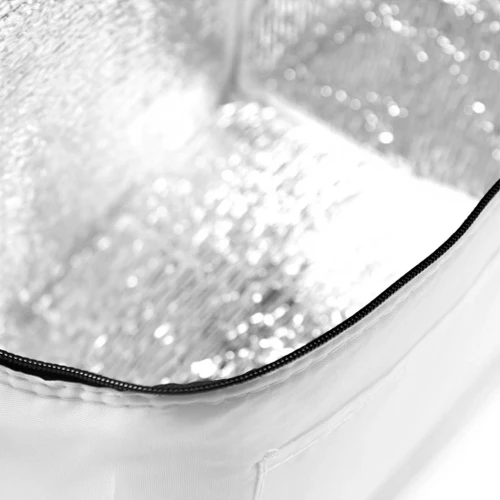 Realizado en su exterior en polyester 210T y su interior en aluminio y PE Foam 2mm. Cuenta con tira para colgar al hombro y bolsillo frontal sin cierre. Medidas: 20,3 x 15,2 x 15,2 cm. Capacidad 5 Lt