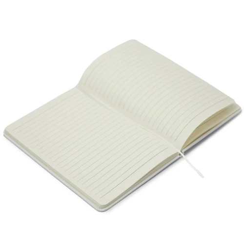 Cuaderno de tapa dura de PU con 64 hojas rayadas de 70g. Cuenta con cinta marcadora. Medidas: A5 - 21 x 14 cm. Tahg