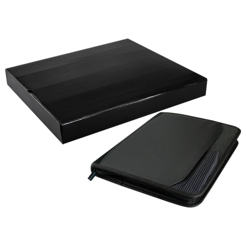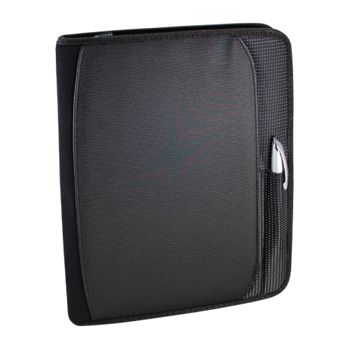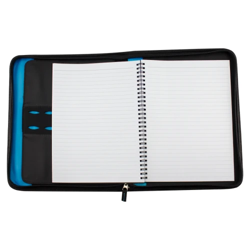 Para el Ejecutivo de hoy. Deluxe Portafolio modelo "President" con Bolso Porta-Tablet removible. Incluye Cuaderno de 50 hojas lineadas, compartimentos para tarjetas, bolígrafo, documentos y celular. Cierre cremallera. Material PU + Polyester 1680D.