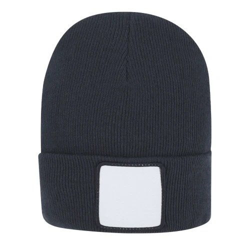Suave y cálido gorro elástico de punto, fabricado en material acrílico. Incluye cómodo dobladillo con parche en blanco en la parte frontal, diseño especial para sublimación.