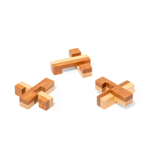 Juego de habilidad de 6 piezas fabricado en suave bambú. Un divertido rompecabezas perfecto para el entretenimiento: hay que ensamblar las piezas en una combinación única que nos mostrará la figura buscada. Presentado individualmente en una caja de diseño kraft.Materiales como el bambú fomentan la utilización de materias primas naturales, reduciendo las emisiones contaminantes. Proviene de una planta de gran resistencia y versatilidad, con crecimiento y regeneración rápidos, siendo una excelente alternativa al uso de madera tradicional.