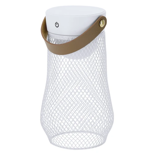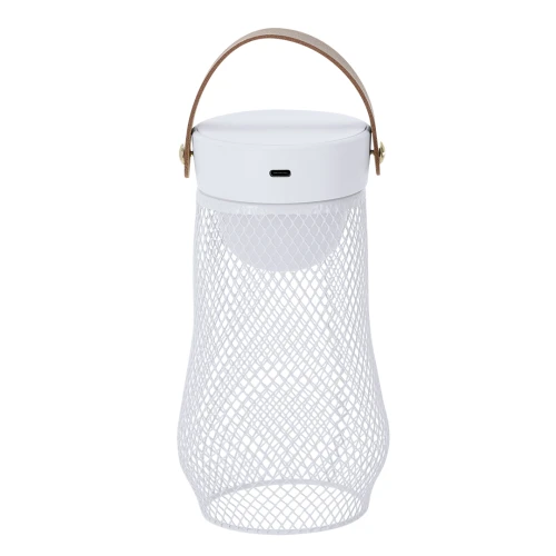 Lámpara de diseño en metal. Incluye asa superior en suave PU. Dispone de 3 modos de luz (blanca, neutra y cálida). Equipada con 24 LEDs. Ideal tanto para espacios interiores como exteriores. Botón táctil integrado para encendido, apagado y la selección del modo de luz. Equipada con batería recargable de 1.200 mAh y entrada Tipo C.
