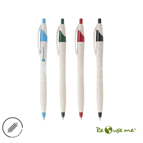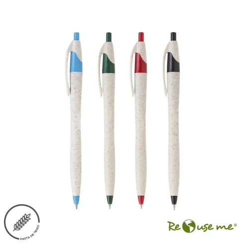 Lápiz confeccionado en ABS y Wheat Straw, pasta de tallo de trigo, un material sustentable que reduce el consumo de plásticos vírgenes. Tinta de color azul. Apertura con sistema retráctil. Debido a que la pasta de trigo es un material 100% natural, puede haber ligeras variaciones en el color del producto de un lote a otro. ReUseMe