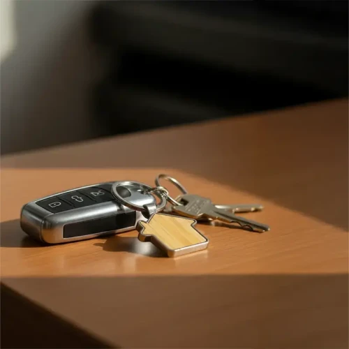 Llavero metálico con silueta de casa y bambú. Fabricado en aleación de zinc y bambú en tono natural. Cuenta con anilla resistente y diseño de casa ideal para branding. Es ideal para inmobiliarias, constructoras, promociones y obsequios corporativos. Dimensiones 41 mm x 4 mm x 70 mm. Tahg