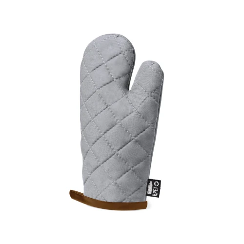 Manopla de cocina de línea nature. Fabricada en poliéster RPET, elaborado a partir de plástico reciclado, para así fomentar la reutilización de residuos plásticos y ayudar a la sostenibilidad del planeta. Con una cara lisa para impresión y cinta para colgar en contraste. Etiqueta exterior con distintivo RPET.