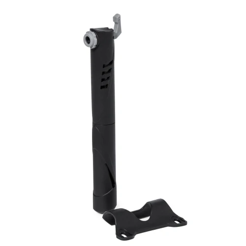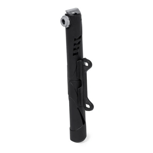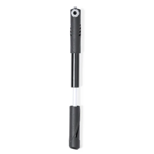 Práctica bomba para bicicleta, fabricada en resistente aluminio. De inflado manual y en tamaño reducido, con accesorio de acople válido para cualquier tipo de bicicleta.