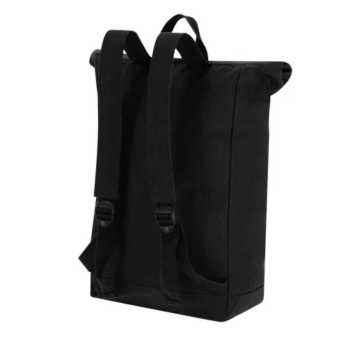 Mochila fabricada en material 100% canvas reciclado. Compartimento principal de gran capacidad con cierre de hebilla de seguridad y velcro, incluyendo un bolsillo frontal con cierre de cremallera invisible. Bolsillo lateral abierto de rápido acceso y asa superior. Con cintas para los hombros ajustables y etiqueta exterior con logotipo Algodón Reciclado.