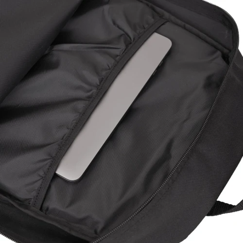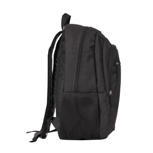 Mochila portanotebook, con respaldar acolchado, confeccionada en 100% polyester. Cuenta con dos bolsillos principales, un segundo bolsillo frontal, y laterales de red para transportar botellas o pequeños objetos. Dimensiones: 32 ancho x 45 de alto x 14.5 de profundidad. Capacidad: 21 litros . Notebook: 15,6".