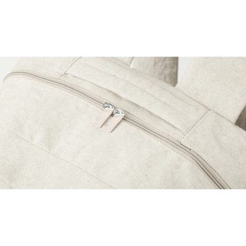 Mochila fabricada en algodón 100% reciclado GRS de 300g/m2. Cuenta con compartimento principal y bolsillo frontal con cierre de cremallera. Incluye asa de transporte y cintas para hombros ajustables a juego, acolchadas para mayor comodidad. Disponible en una variada gama de colores y con logotipo algodón reciclado en la etiqueta exterior. Disponible certificación GRS (Global Recycled Standard / Estándar de Reciclaje Global), que garantiza el origen reciclado del material usado para fabricar el producto.