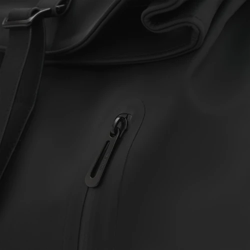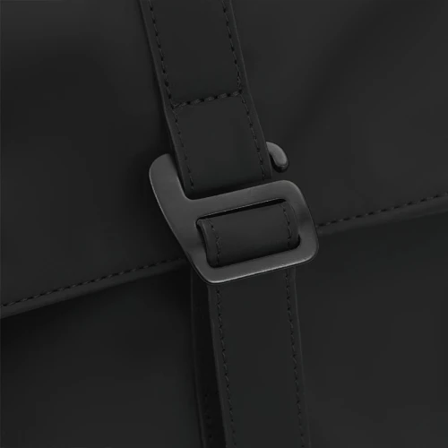Mochila con cierre enrollable y acceso frontal. Está confeccionada en PU. Cuenta con apertura superior con tira y hebilla, bolsillo con cierre al frente, espalda acolchada y correas ajustables. Incluye manija superior y diseño compacto.