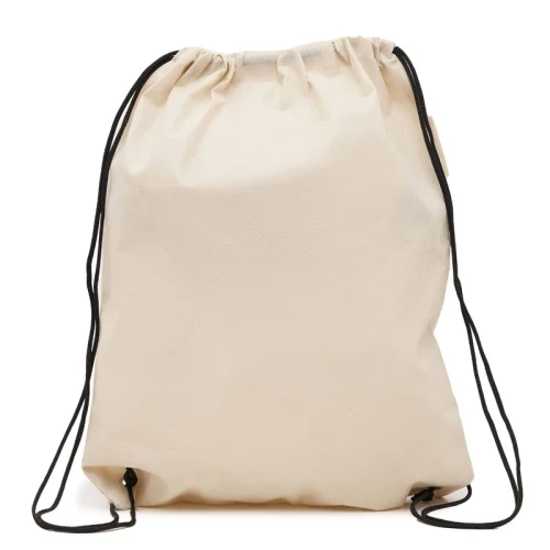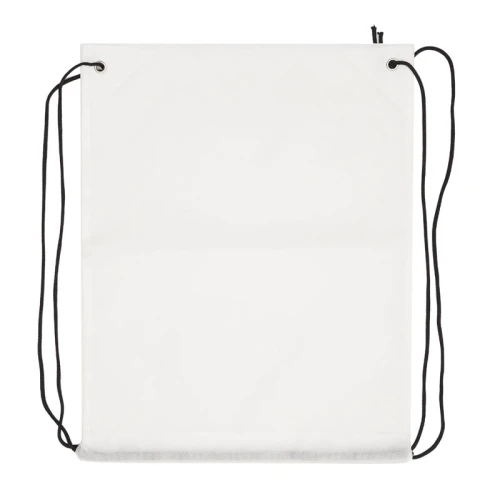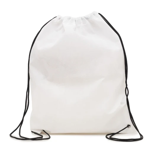 Bolsa de TNT, tela no tejida, con correas para ser usada como mochila. Capacidad: 2.9 Lts. Medidas:35 x 44 cm.