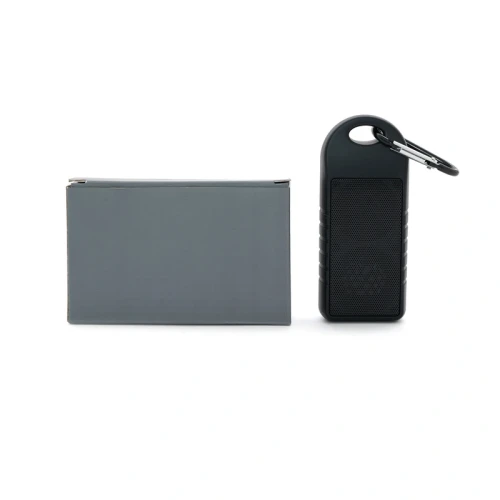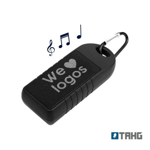 Parlante portátil con tecnología Bluetoothv 5.0. Es resistente a las salpicaduras de agua (no es resistente a ser sumergido). Realizado en combinación de ABS y Silicona, con gancho mosquetón para colgarlo o transportarlo. No incluye micrófono manos libres. Batería de 350mAh | Potencia del parlante: 1W | Conexión3.7V/500mA | Alcance: 10 metros | Peso: 140g | Medidas120 x 50 x 27mm