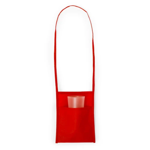 Portatodo en non-woven de variados y alegres colores con bolsillo de gran capacidad. Ribetes y cinta para hombro a juego.