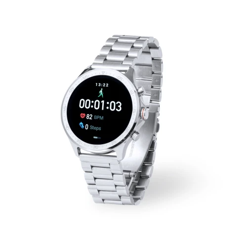 Reloj inteligente multifunción de diseño casual, con conexión Bluetooth. Caja de diseño circular y correa en acero inox a juego. Pantalla TFT táctil de 1,32 pulgadas y batería de 230 mAh, que lo convierten en el gadget perfecto para todo tipo de actividades deportivas, de ocio y para el día a día. Multitud de funciones disponibles, interfaz multilenguaje y resistente a salpicaduras de agua, con APP disponible para iOS y Android. Presentado en caja individual de diseño, con manual de instrucciones en español e inglés.