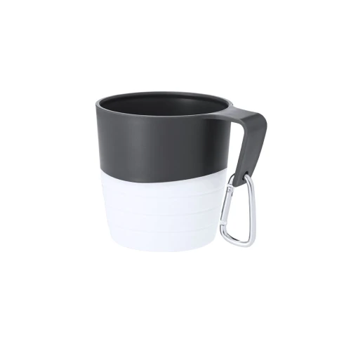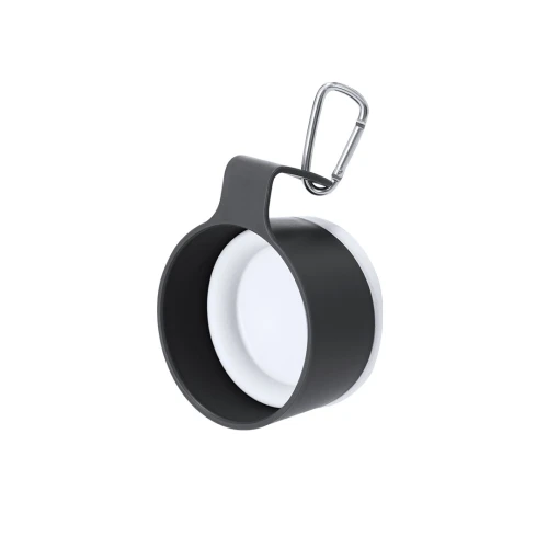 Taza plegable de 340 ml de capacidad. Fabricado en silicona de alta calidad con borde y asa rígidos fabricados en resistente PP. Con cuerpo de acabado mate, esta taza puede ser plegada para un cómodo y sencillo almacenamiento. Incluye mosquetón metálico para fácil transporte. Libre de BPA.
