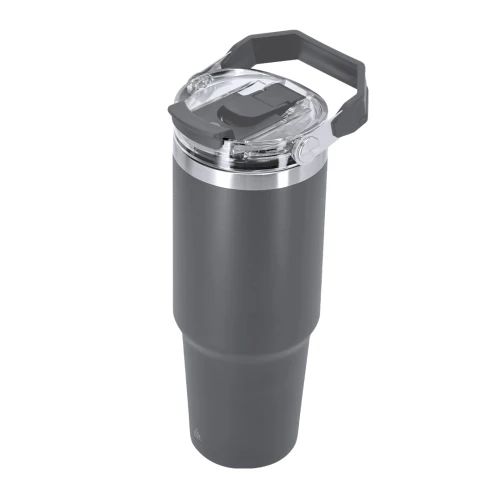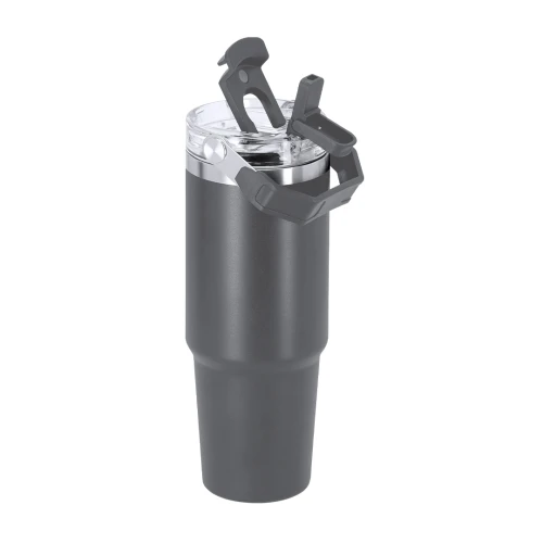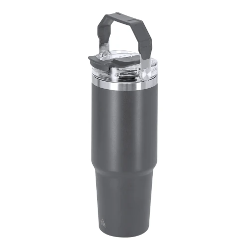 Vaso térmico con 900 ml de capacidad con doble pared. Fabricado en Acero Inoxidable Reciclado. Cuenta con doble sistema de bebida: orificio con cierre hermético y pajita integrada, adaptándose a las preferencias de uso. Con tapa de sistema de sellado hermético. Incluye práctica asa de transporte, ideal para transportarlo fácilmente en cualquier situación. Libre de BPA. Con distintivo de Acero Inoxidable Reciclado.